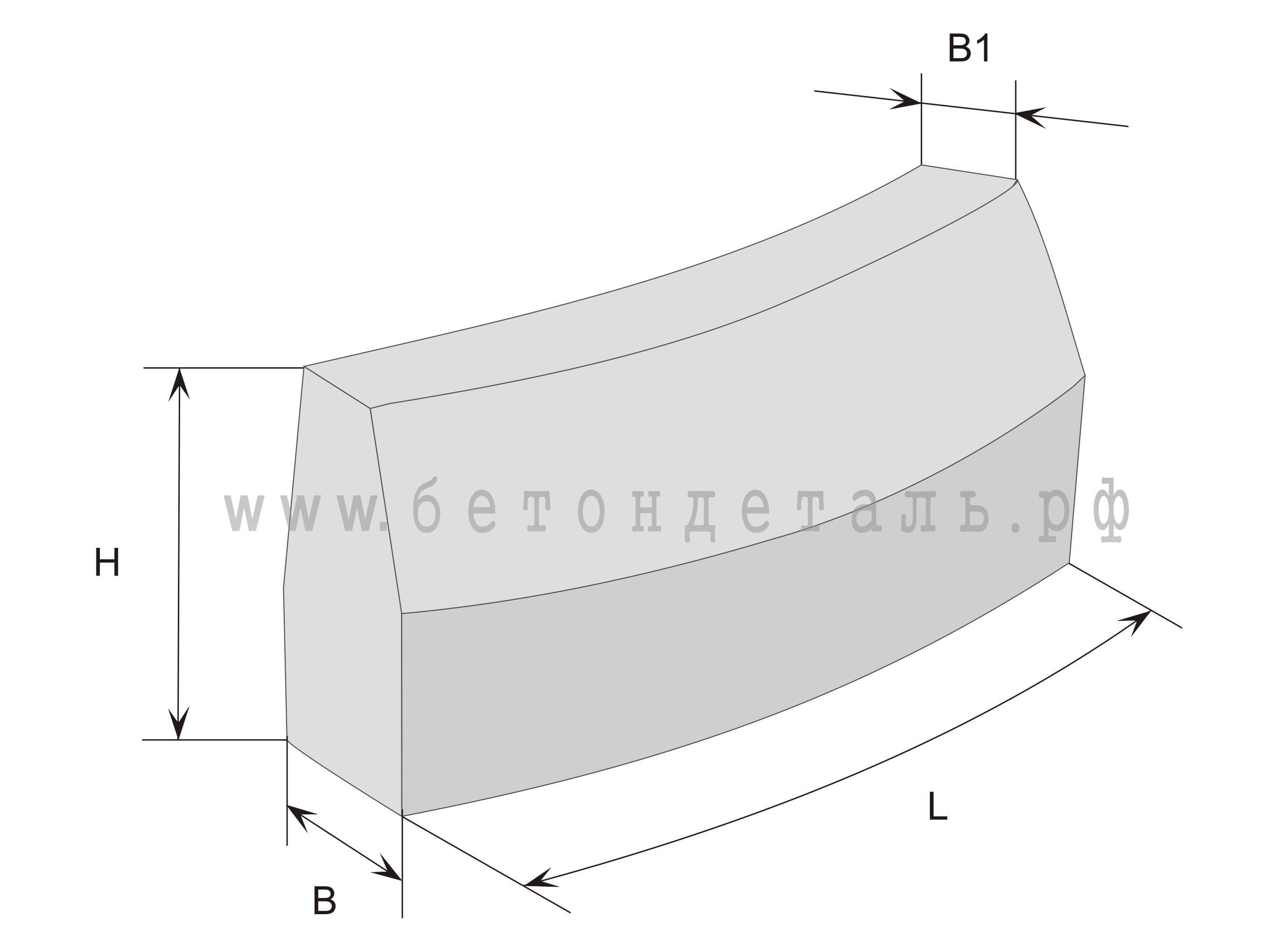 Купить бордюры криволинейные железобетонные ГОСТ 6665-91 в городе Вологда, узнать размеры, цены, вес и другие характеристики вы можете по телефону +7 (8172) 26-41-35.