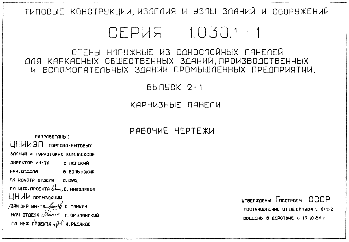 Серия 1.030.1-1. Стены наружные из однослойных панелей для каркасных общественных зданий, производственных и вспомогательных зданий промышленных предприятий.