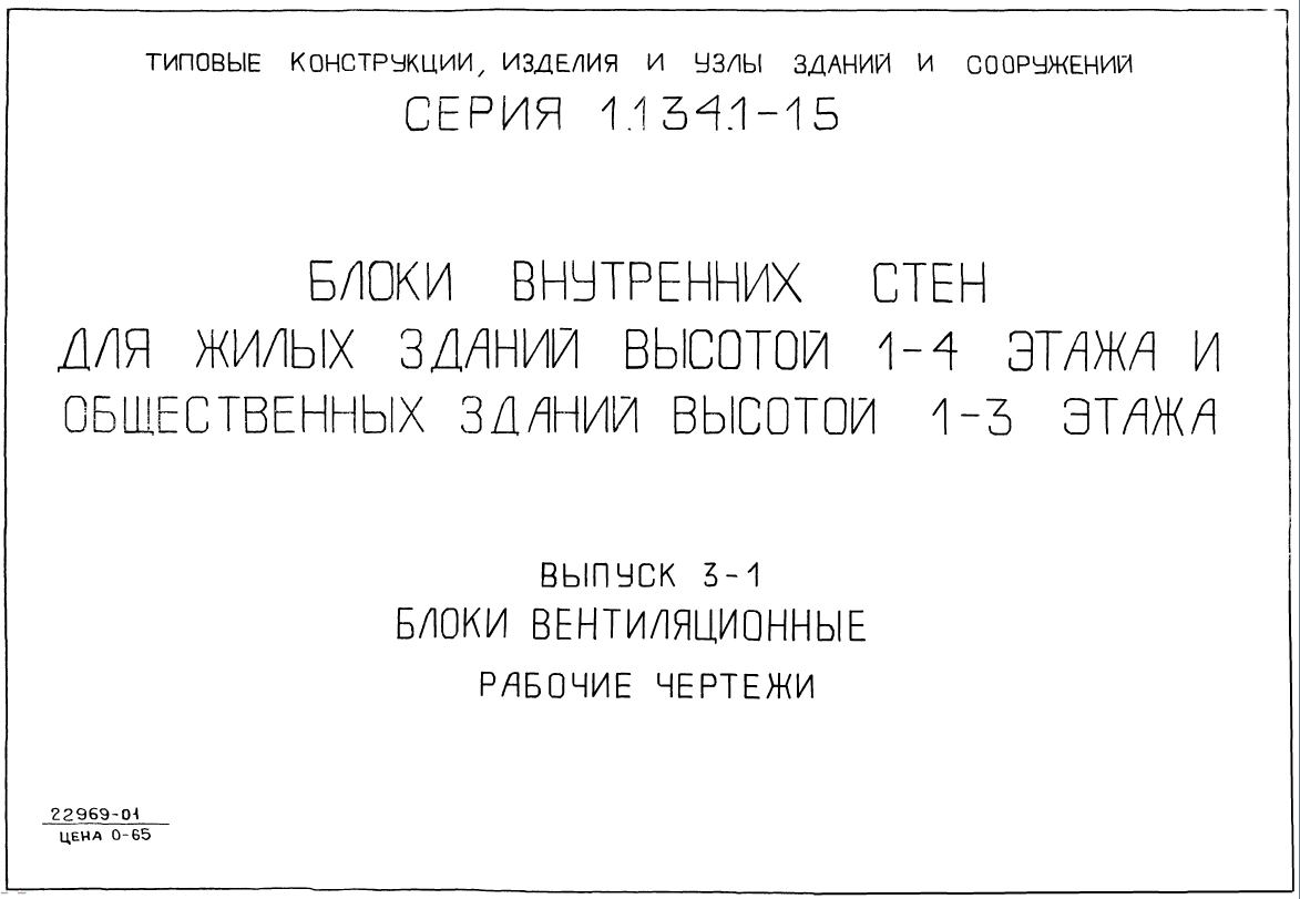 Серия 1.134.1-15. Блоки внутренних стен для жилых зданий высотой 1-4 этажа и общественных зданий высотой 1-3 этажа.