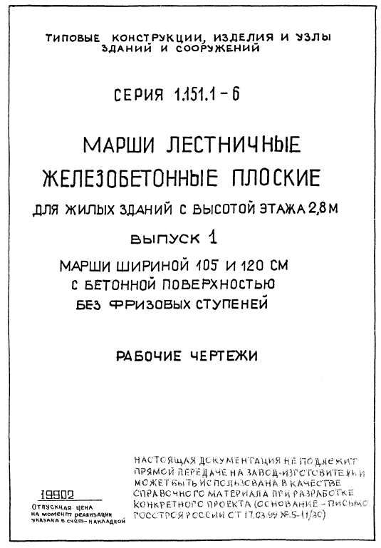 Серия 1.151.1-6. Марши лестничные железобетонные плоские для жилых зданий с высотой этажа 2.8 м
