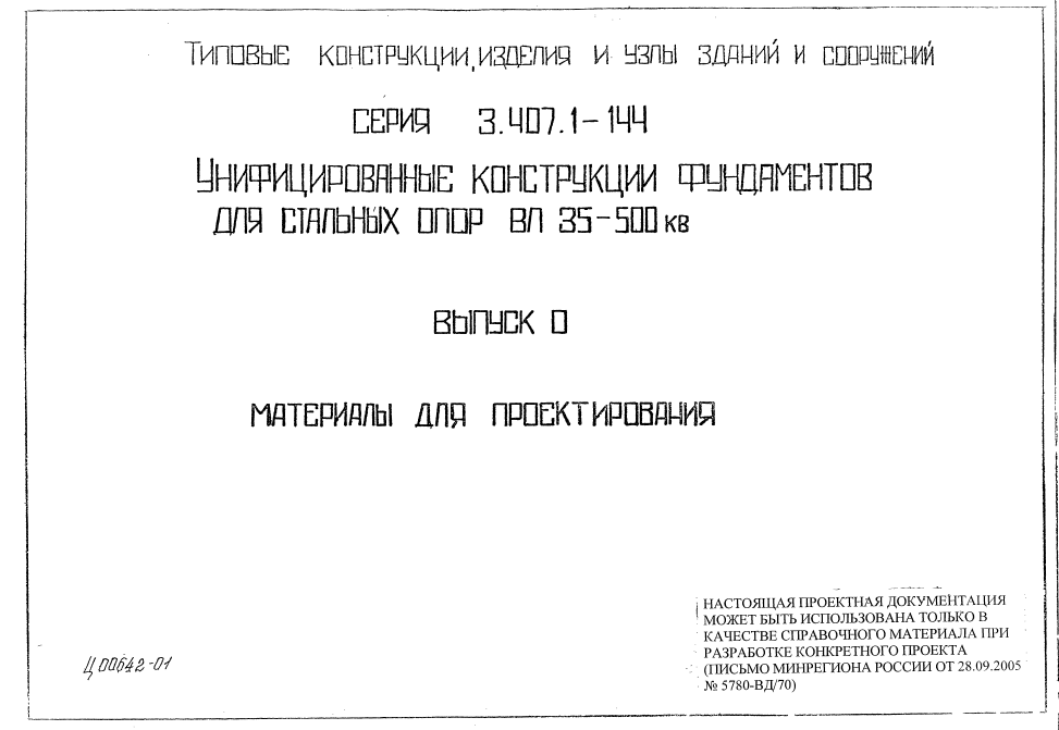 Серия 3.407.1-144. Унифицированные конструкции фундаментов для стальных опор ВЛ 35-500 кв.