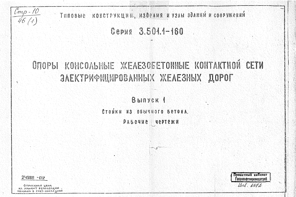 Серия 3.501.1-160. Опоры консольные железобетонные контактной сети электрифицированных железных дорог