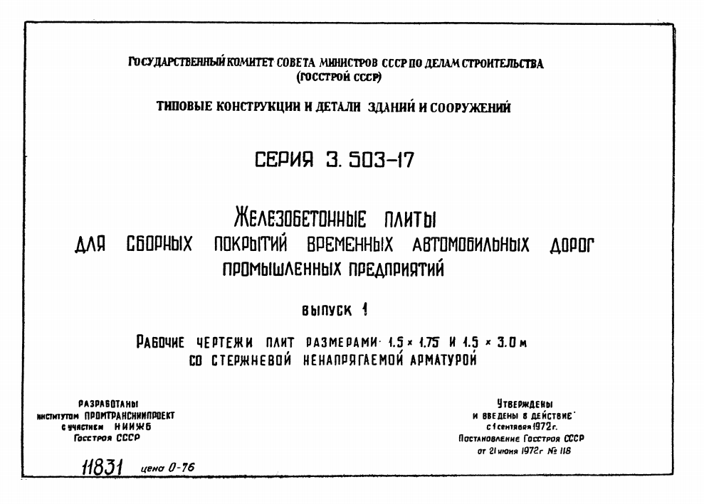 Серия 3.503-17. Железобетонные плиты для сборных покрытий временных автомобильных дорог промышленных предприятий