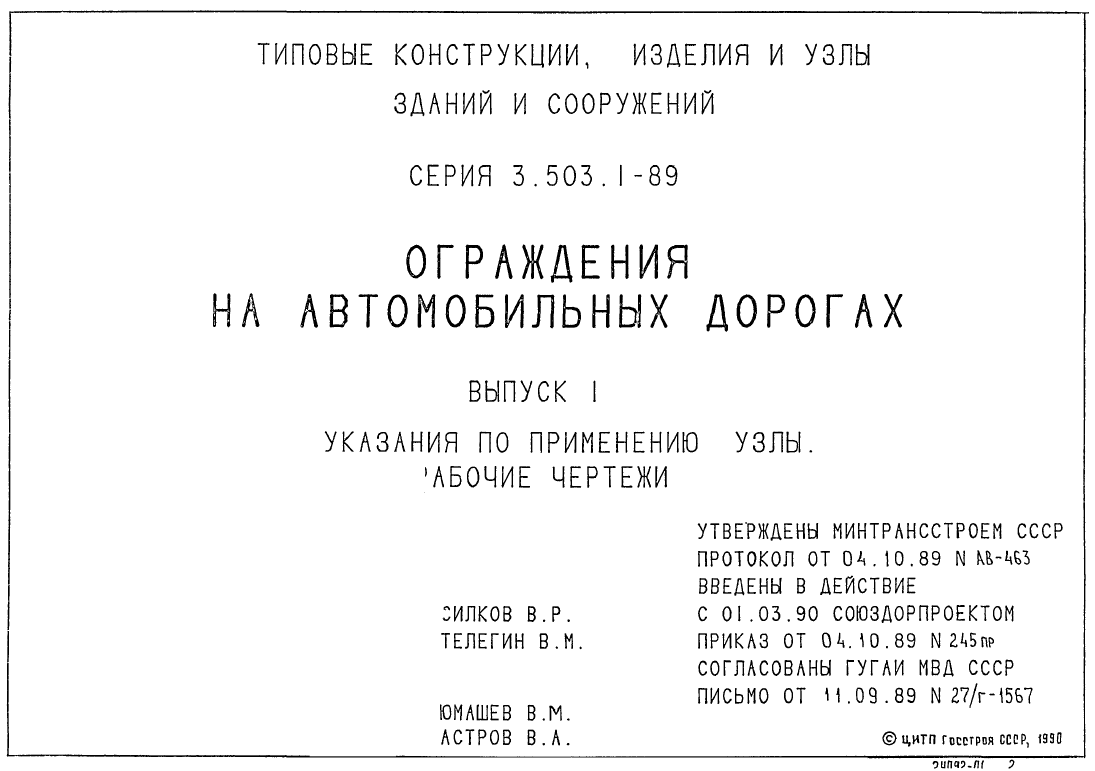 Серия 3.503.1-89. Ограждения на автомобильных дорогах
