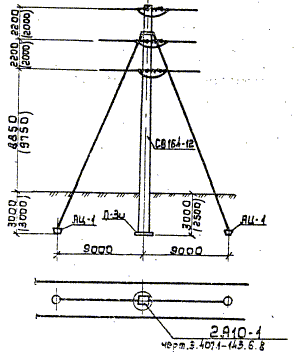 Двухцепная анкерная опора 2А 10 на базе стоек СВ выпускается на основе вибрированной стойки СВ 164-12 прямоугольного сечения. Это особый тип опоры, предназначенный для прокладки проводов низковольтных сетей, проходящих в стеснённых условиях, например на выходах с подстанций, в густо населенной местности, насыщенной инженерными сооружениями и на территории парков. Опоры железобетонные применяются для линий подводящего назначения. Расстояние между ближайшими проводами разных цепей ВЛ 10кВ в ненаселенной и населенной местности составляет 2,5 м, таким образом обеспечивается надежная работа линий. Напряжение воздушной линии электропередач, на которую устанавливается двухцепная опора, не превышает 10 кВ. Данный вид опор предназначен для эксплуатации в районах ветровой нагрузки I-VI и гололедных районов. Температура воздуха площадки установки двухцепной опоры должна быть не ниже -40°С. Для эксплуатации в районах северных широт рекомендуется использовать опоры, изготовленные на заказ именно для данных климатических условий. Опоры 2А 10 предназначены для использования в неагрессивных районах . Для эксплуатации в агрессивных средах опоры анкерные предварительно защищают специальными веществами. Сейсмичность района установки двухцепных опор 2А 10 должна составлять не более 9 баллов. Железобетонные двухцепные опоры используются в любых типах грунтов с коэффициентом пористости 0,45-1,05.