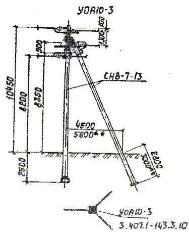 Угловая ответвительная анкерная опора для ВЛ 10 кВ УОА 10-3 состоит из стоек СНВ 7-13 и стальных конструкций. Опора УОА 10-3 – это железобетонная конструкция высотой 13 метров, предназначение которой состоит в креплении проводов и сопутствующего оборудования на необходимом расстоянии от земли, воды и друг от друга. Опоры УОА 10-3 самая важная часть магистрали, так как именно данные опоры позволяют протягивать провода на многие километры даже в труднодоступной местности. Опора анкерная УОА 10-3 состоит из трех вибрированных стойек СВ прямоугольного сечения, расположенные определенным образом, плиты П-3и, и стальных конструкций, которые представляют собой полноценную опору, выдерживающую расчетный изгибающий момент 35 кНм.