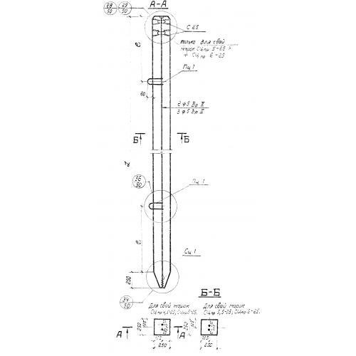СЦпр 5-30  Свая квадратного сечения без поперечного армирования ствола (центральное армирование высокопрочной проволокой) (Серия 1.011-6).
