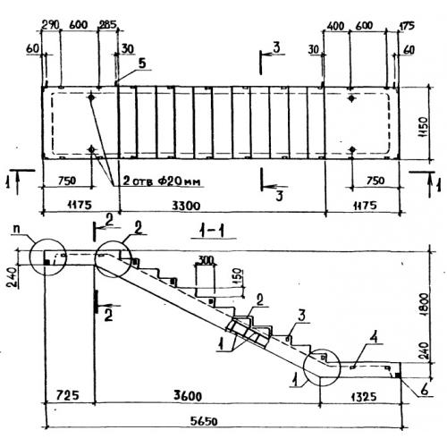 ЛМП 57.11.18 Лестничные марши ребристые с полуплощадками по серии 1.050.9-4.93.