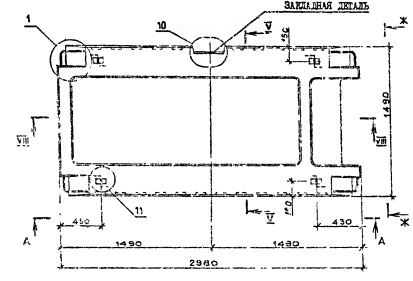 Цифры, стоящие после буквенного индекса, обозначают округленные размеры длины и ширины конструкций в дециметрах. Вторая группа марки характеризует величину расчетной нагрузки в сотнях килограммов на квадратный метр, класс стали напрягаемой арматуры, вид бетона. Цифровой индекс перед маркой панели означает: для многопустотных плит наличие вырезов по продольной грани; для ребристых плит - наличие вырезов по продольной грани панели или расположение поперечных ребер.