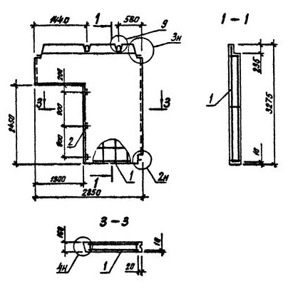 2ПВГ 29.33.13-1Т-ПВ Панели внутренние Г-образные.
