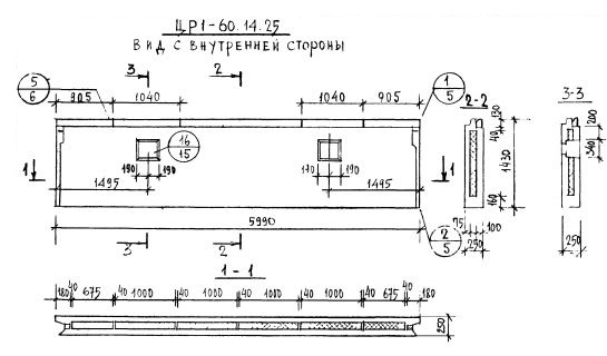 Серия 1.117-9    Панели групп ЦР1, ЦР2, ЦР4, ЦР5  толщиной 250 мм.