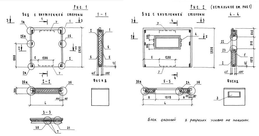 1 (2) - характер проемов (панель без проемов - 1, панель с окном - 2).