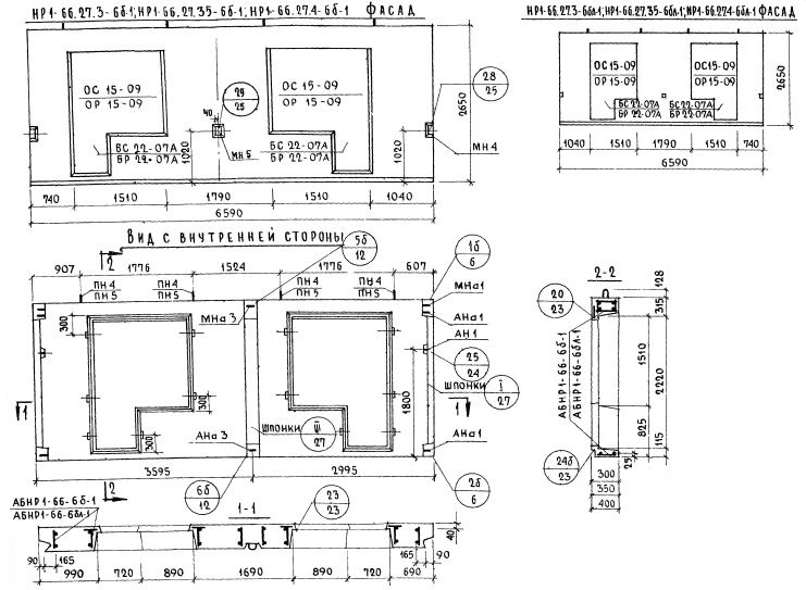 НР1-66.27.35-6бл-1   Наружная стеновая панель рядовая по Серии 1.132-1.