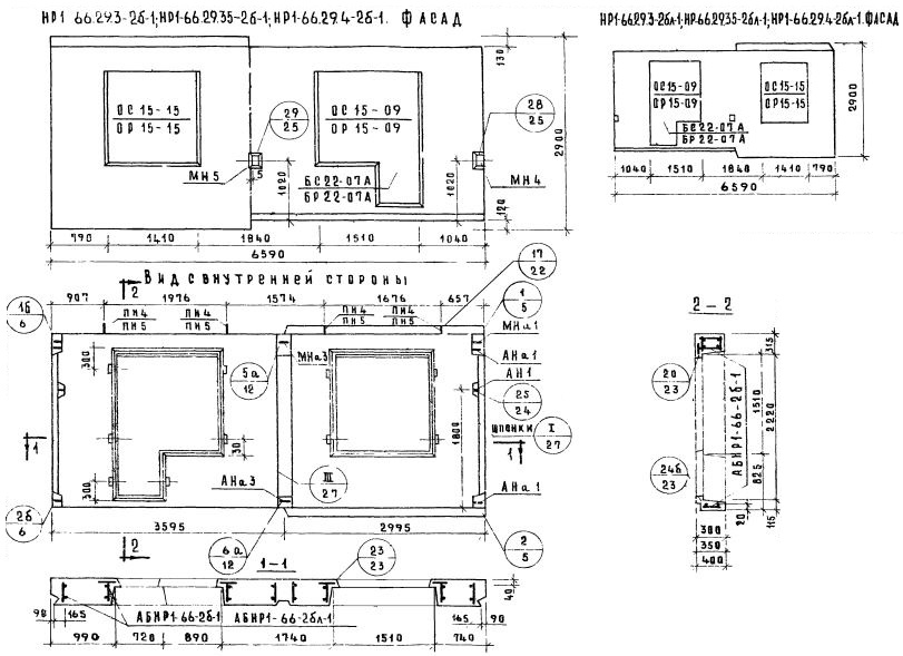 НР1-66.29.35-2б-1 Наружная стеновая панель рядовая по Серии 1.132-1.