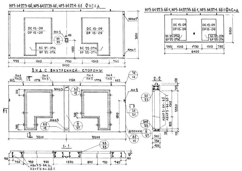 НР5-64.27.3-6б   Наружная стеновая панель рядовая по Серии 1.132-1.