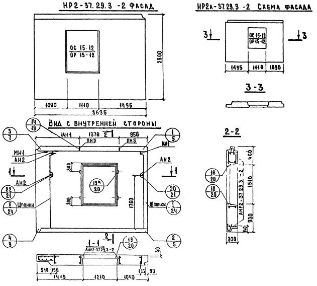 НР2-37.29.3-2    Наружная стеновая панель рядовая по Серии 1.132-2.