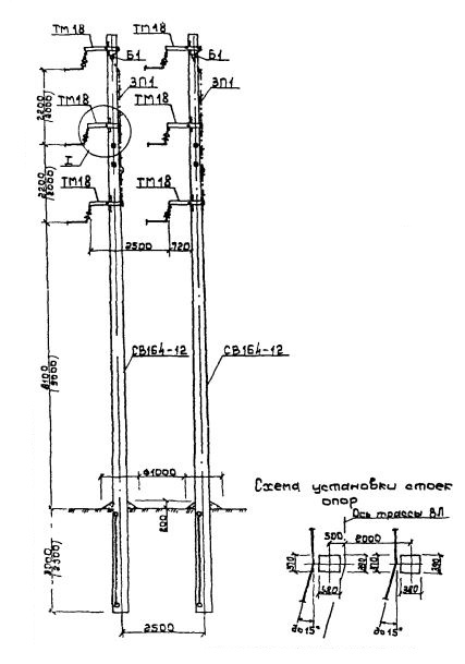 2УП 10  Угловые промежуточные опоры Серия 3.407.1-143.