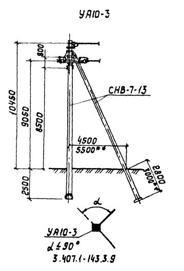 Рассчитать стоимостьУА 10-3 Угловые анкерные опоры Серия 3.407.1-143.