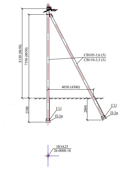 ПОА 25 Переходные ответвительные анкерные одноцепные опоры по Шифру 26.0008.