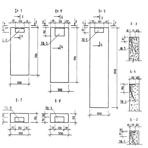 СТ-3 Опоры (бетонные столбики). Малые архитектурные формы и элементы благоустройства улиц, дорог, площадей по серии ТП 320-55.